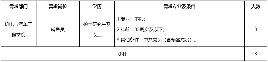 3.其他條件:要求本科為以下專(zhuān)業(yè)之一:交通運(yùn)輸、車(chē)輛工程,新能源汽車(chē)工程技術(shù)、智能網(wǎng)聯(lián)汽車(chē)工程技術(shù)、汽車(chē)電子技術(shù)與檢測(cè)診斷專(zhuān)業(yè);具有副高職稱(chēng)的,年齡放寬至40周歲及以下。