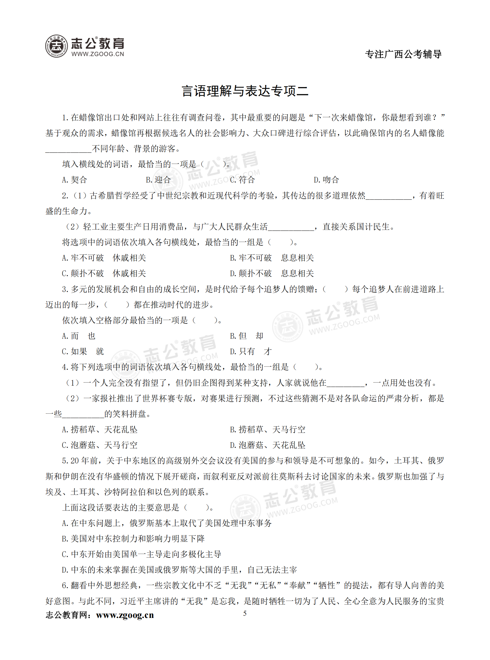 【公考模塊練習(xí)】言語理解題二(試題)