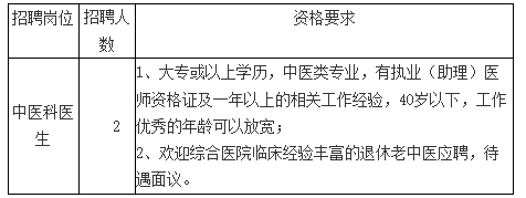 我院因業(yè)務發(fā)展需要,決定面向社會公開招聘中醫(yī)科醫(yī)生2人,現(xiàn)將有關事項公告如下: