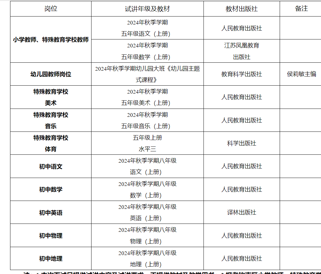 注:1.本次面試只提供試講內(nèi)容及試講要求,不提供教材及教學(xué)用書;2.報(bào)考?xì)J南區(qū)小學(xué)教師、特殊教育學(xué)校教師崗位的考生可自由選擇語(yǔ)文或數(shù)學(xué)進(jìn)行試講。