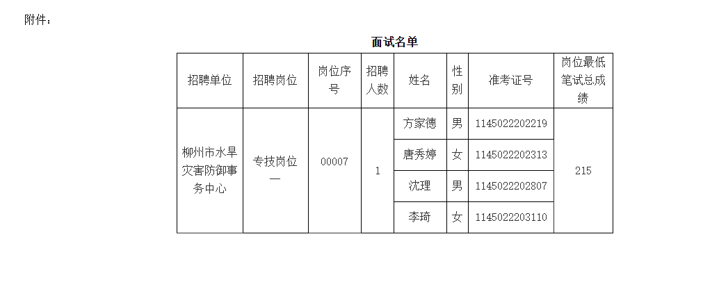 根據(jù)《柳州市2025年度上半年事業(yè)單位公開考試招聘工作人員公告》《廣西壯族自治區(qū)事業(yè)單位公開招聘人員實施辦法》(桂人社發(fā)〔2011〕155號)、《關(guān)于印發(fā)<廣西壯族自治區(qū)事業(yè)單位公開招聘工作人員面試工作規(guī)則(試行)>的通知》(桂人社發(fā)〔2012〕79號)的規(guī)定,柳州市水利局?jǐn)M組織所屬事業(yè)單位公開招聘工作人員面試,現(xiàn)將相關(guān)事宜公告如下: