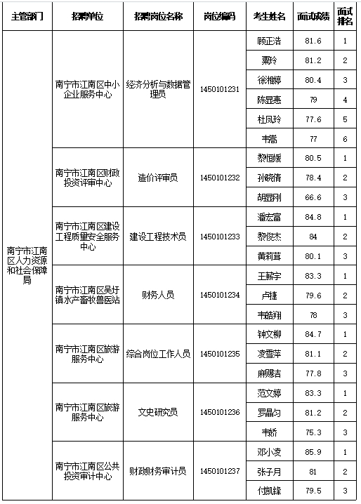 原文標(biāo)題:南寧市江南區(qū)人力資源和社會保障局2025年公開考試招聘事業(yè)單位工作人員面試成績表