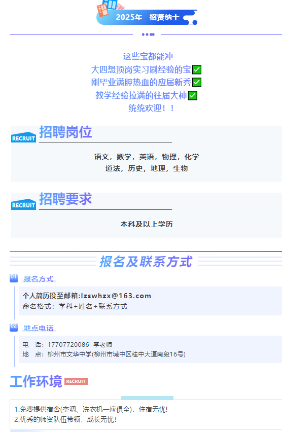 原文標題:柳州市文華中學教育集團總部學院路校區(qū)招聘啟事