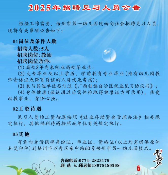 原文標(biāo)題:梧州市第一幼兒園2025年招聘見習(xí)人員公告