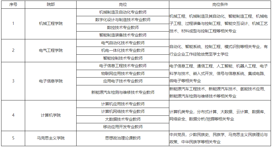 4.專任教師崗具有碩士及以上學位;具有高校教學經(jīng)驗、中級以上專業(yè)技術職務或行業(yè)企業(yè)工作經(jīng)驗,條件可放寬至學士學位;