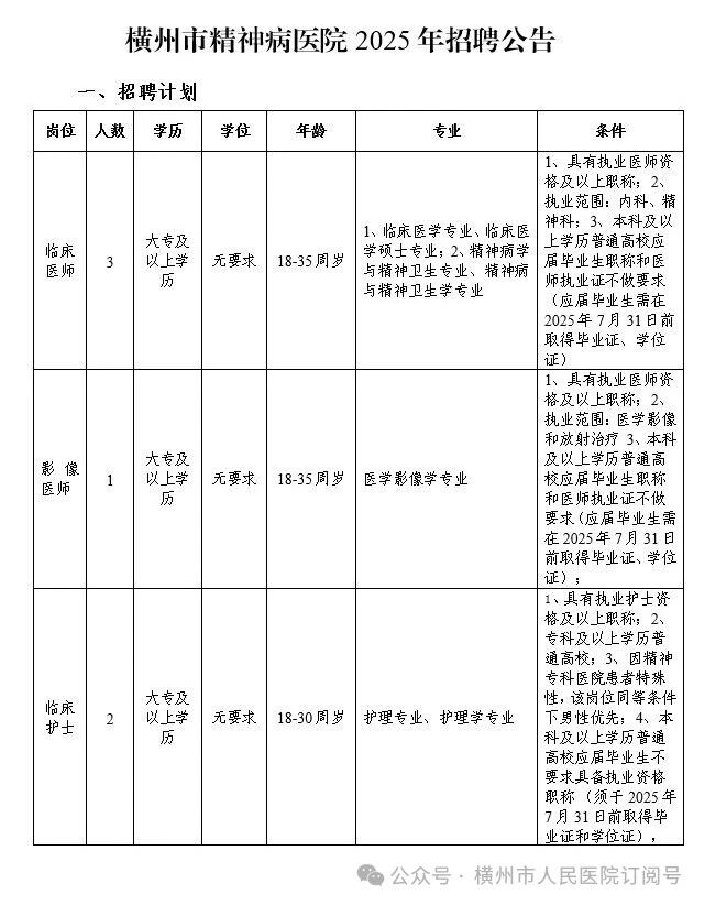 2025年橫州市精神病醫(yī)院招聘公告
