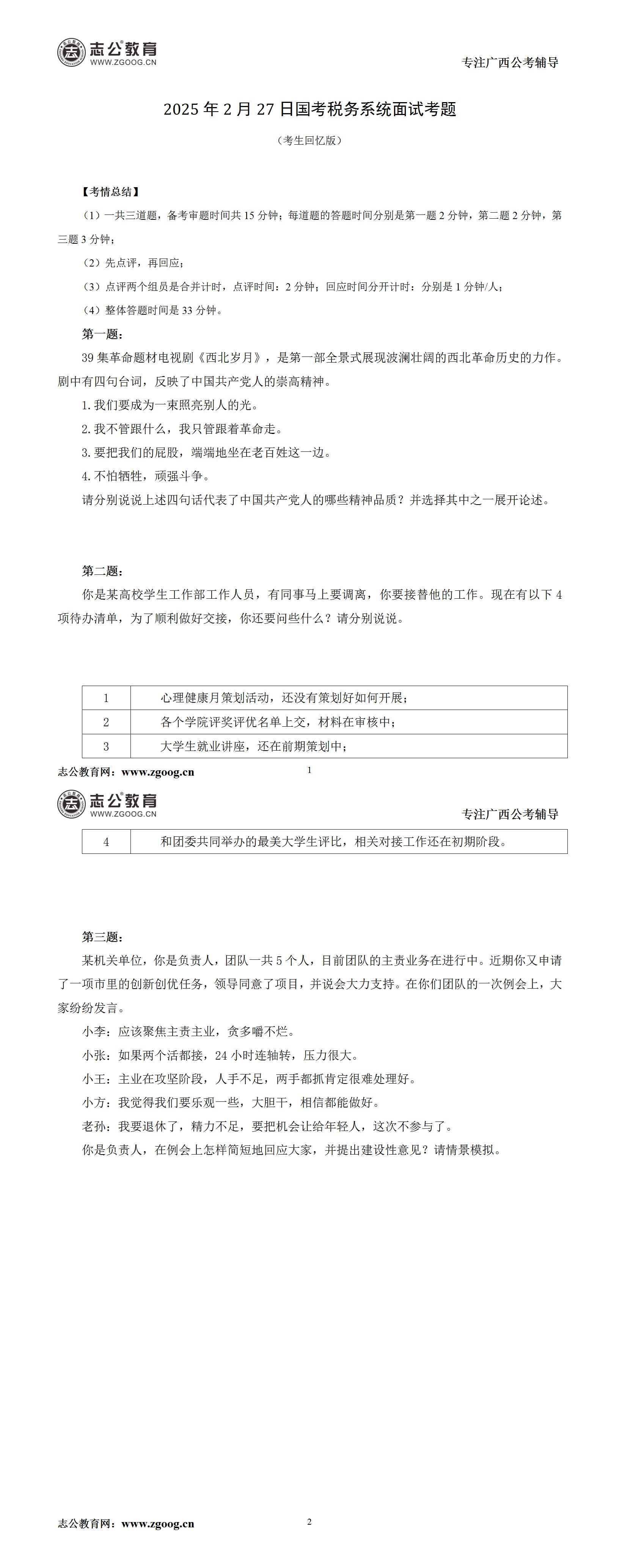 2025年國考稅務系統(tǒng)2月27日面試考題(考生回憶版)
