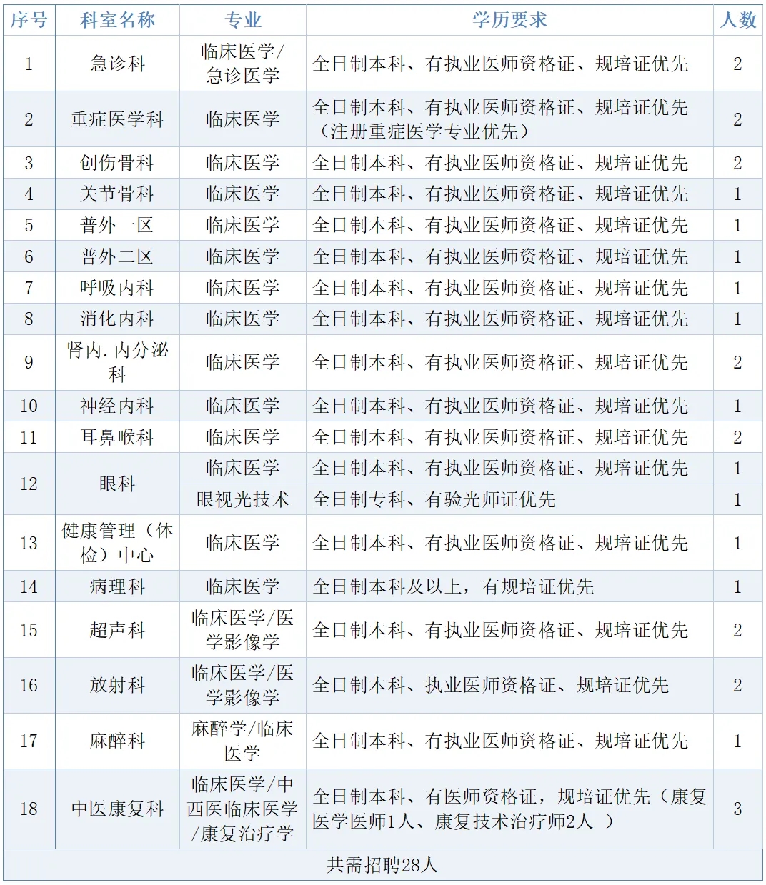 為了促進(jìn)醫(yī)院醫(yī)療業(yè)務(wù)發(fā)展,擬招聘醫(yī)學(xué)類(lèi)各專(zhuān)業(yè)技術(shù)人員, 招聘細(xì)則如下: