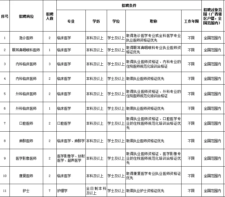 7.應(yīng)聘醫(yī)師崗位者,須取得執(zhí)業(yè)醫(yī)師資格證,取得相應(yīng)崗位所要求專業(yè)的住院醫(yī)師規(guī)范化培訓合格證書或在2026年8月前完成規(guī)培;