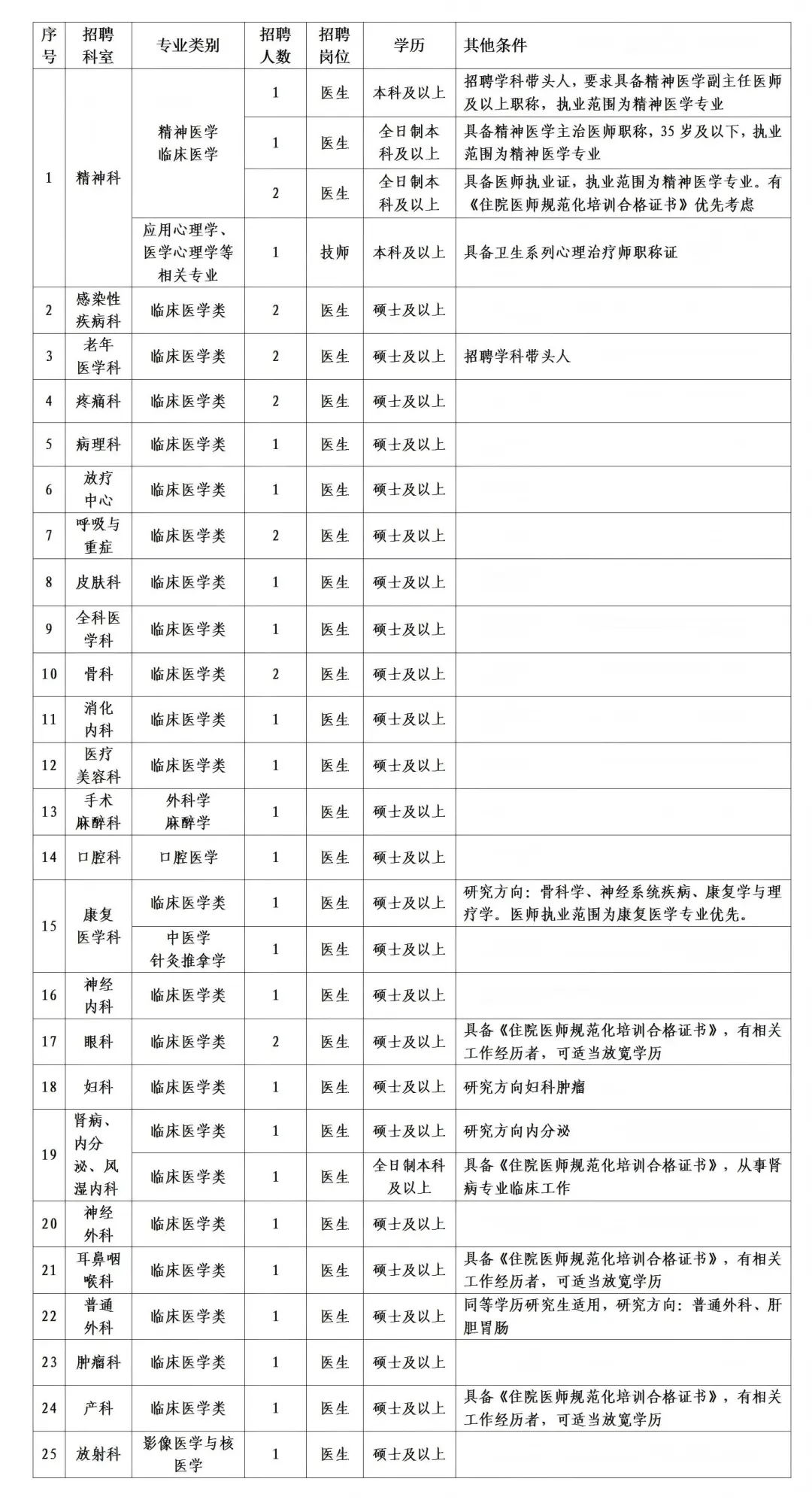 臨床醫(yī)學(xué)領(lǐng)域日新月異,學(xué)科帶頭人的學(xué)術(shù)水平與創(chuàng)新能力直接決定學(xué)科高度。為了給學(xué)科發(fā)展注入新鮮血液,提升核心競爭力。我院長期動態(tài)招聘各學(xué)科帶頭人、高級職稱臨床醫(yī)師、臨床醫(yī)學(xué)類全日制碩士研究生及以上學(xué)歷人員(作為學(xué)科帶頭人的培養(yǎng)對象,納入單位人才儲備庫)。具體待遇按《河池市金城江區(qū)醫(yī)療衛(wèi)生高層次和急需緊缺專業(yè)人才激勵暫行辦法》執(zhí)行。