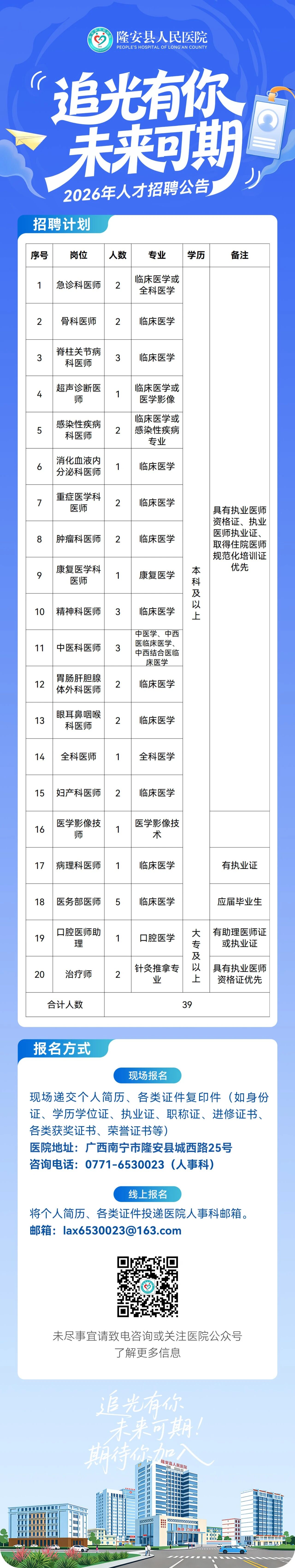 2026年隆安縣人民醫(yī)院人才招聘公告